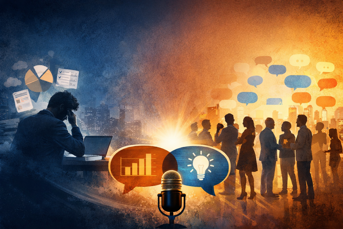 Podcasting is not a marketing bolt-on here. It is a forcing function that pressures your thinking into clean, repeatable language, and reveals what is unclear.